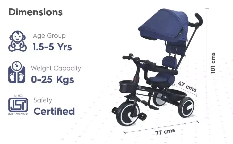 - BIS Safety Certified: Tiny Toes T30 Ace tricycle is BIS safety certified and has safety belts for the complete safety and security of your baby.