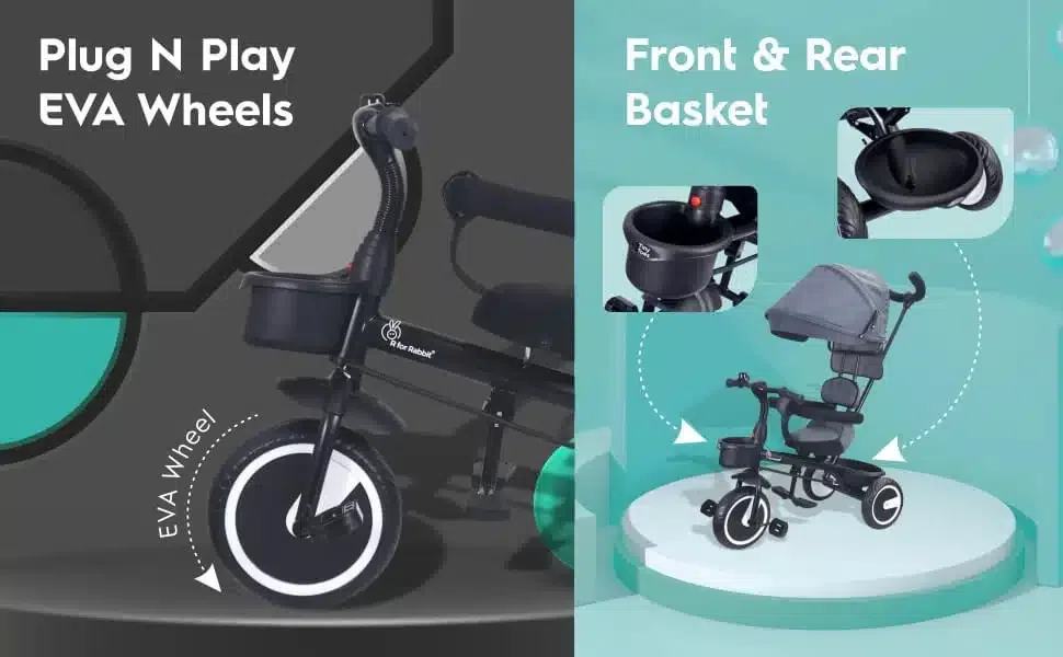 - Comfortable Seat with Footrest: R for Rabbit Tiny Toes T30 Ace comes with incredibly comfortable seating for longer rides. It also has a footrest so your child can take a break and enjoy sitting on a tricycle.