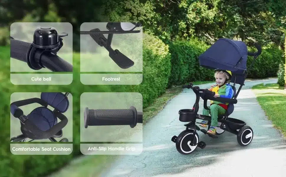- Storage: Has a place to store toys, drink sips, and other items while riding.