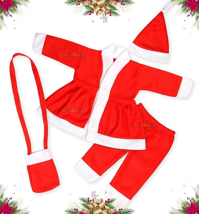 COMPLETE SANTA COSTUME FOR KIDS: This festive set includes a bright red Santa frock, matching Pants, a cap, goggles, a Santa pouch, and a cute hairband. The thoughtful design ensures your child looks adorable and feels comfortable during Christmas parties, school plays, and photoshoots. SOFT AND COMFORTABLE MATERIAL: Made from lightweight, breathable fabric, this Santa outfit is designed to keep your child cozy and happy during hours of wear. The soft-touch material prevents irritation, allowing kids to enjoy their Christmas activities in total comfort without any fuss. VERSATILE SIZE OPTIONS FOR ALL AGES: With sizes ranging from newborn to adults, this costume caters to every child. Adjustable features make it easy to customize the fit, ensuring your little one feels relaxed. Check the detailed size chart to find the perfect match for your child. FESTIVE, FUN DESIGN WITH EASY WEAR: The vibrant red frock and white accents create a classic Santa look. The set includes accessories like a pouch, goggles, and a fun hairband for added flair. The easy-to-wear design is ideal for quick changes and saves parents time.
